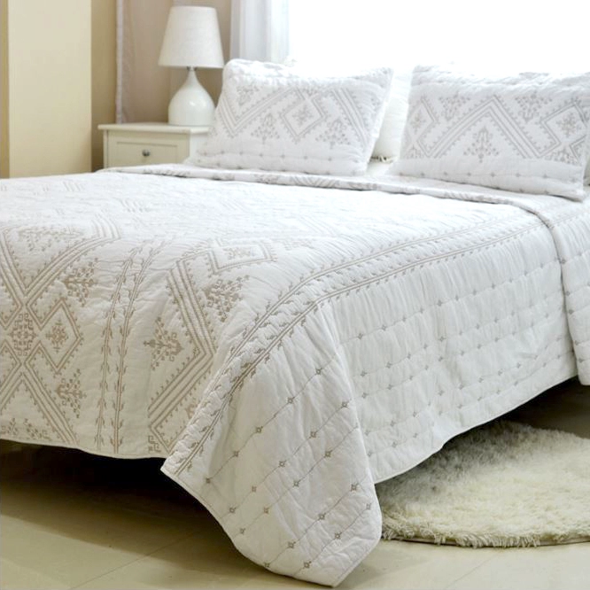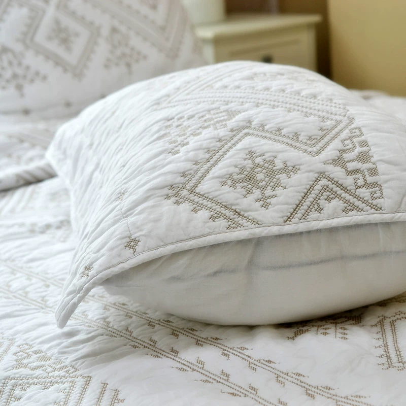 Crafted from 100% pure cotton, this three-piece embroidered set offers breathable comfort and all-season versatility. The intricate white-on-white stitching reflects classic European style, perfect for enhancing both modern and Traditional Style interiors. Ideal for use as a light summer quilt or layered year-round, it’s a beautiful balance of elegance and ease.