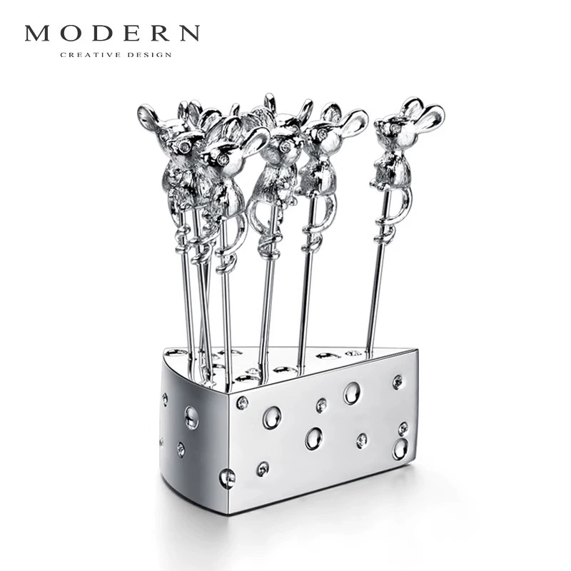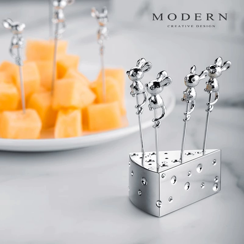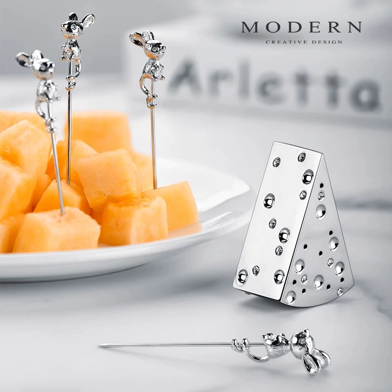 This adorable set features polished metal fruit picks, each topped with a sculpted mouse, playfully perched on a wedge of cheese-shaped holder. Perfect for fruit, cheese cubes, desserts, or cocktail snacks, it brings personality and style to any Dining Table, Party Tray, or Home Café setup in Thailand.