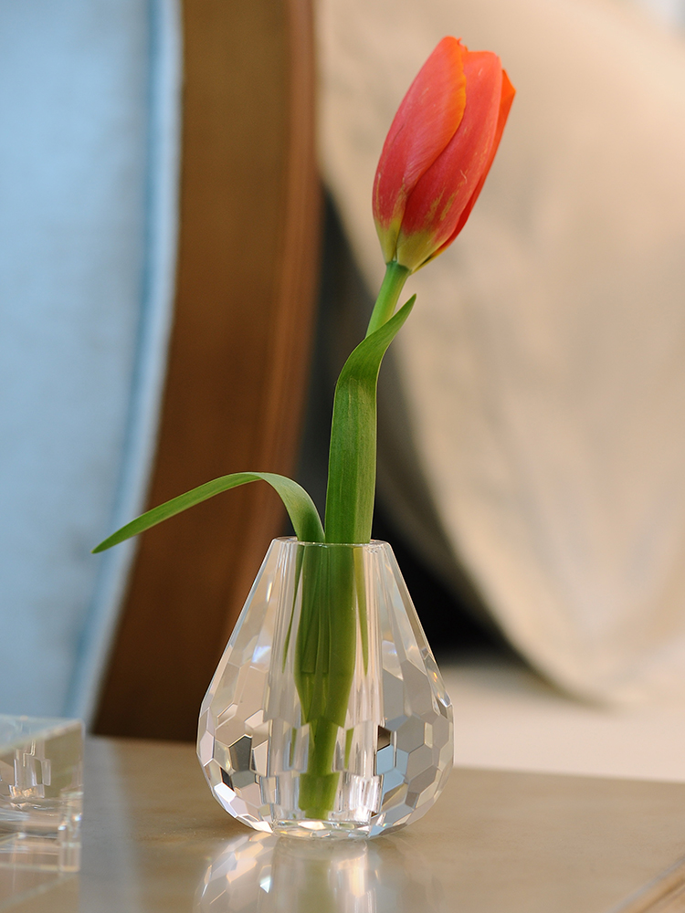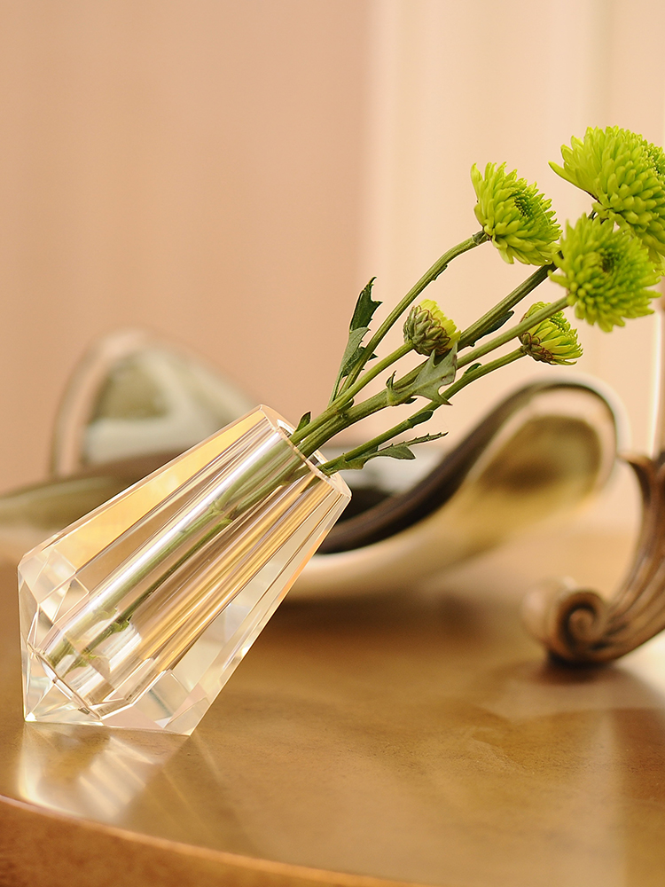 Crafted with a geometric cut that catches the light beautifully, it’s ideal for single blooms or small dried arrangements, making it a chic accent for modern Thai homes and décor lovers.
