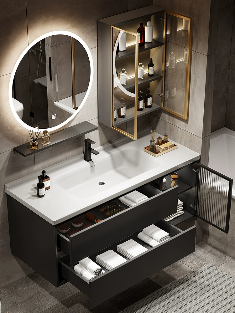 90 Iron Gray/Luxury Storage Rack Mirror Cabinet Ceramic Integrated Basin/Package Installation