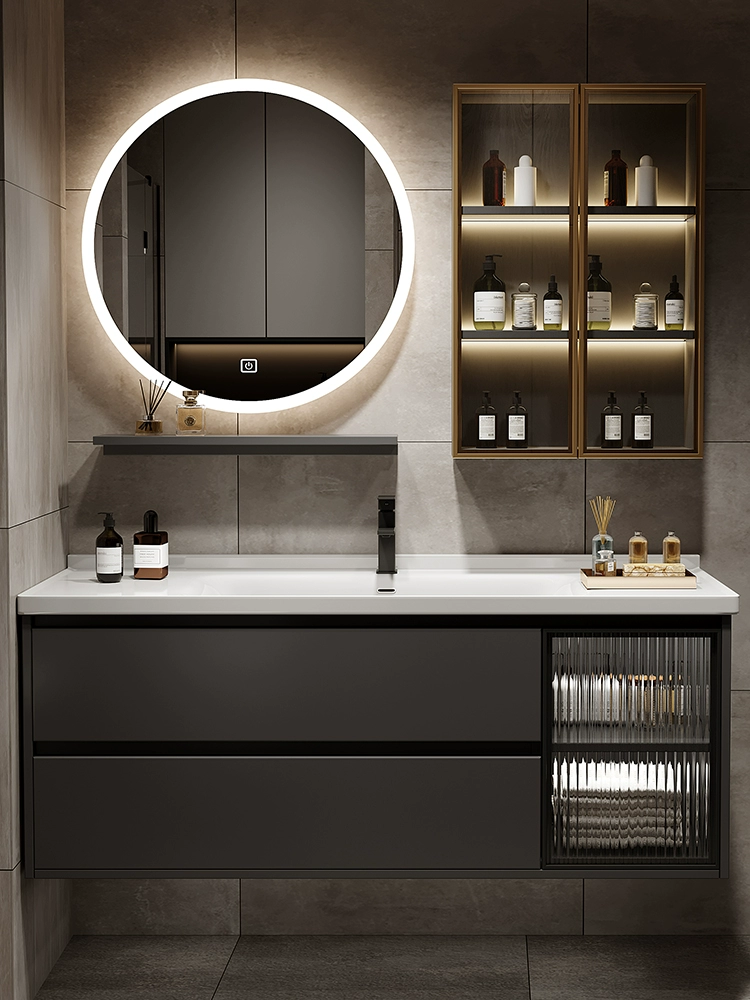 110 iron grey/round mirror side cabinet, ceramic integrated basin/packing into the home installation