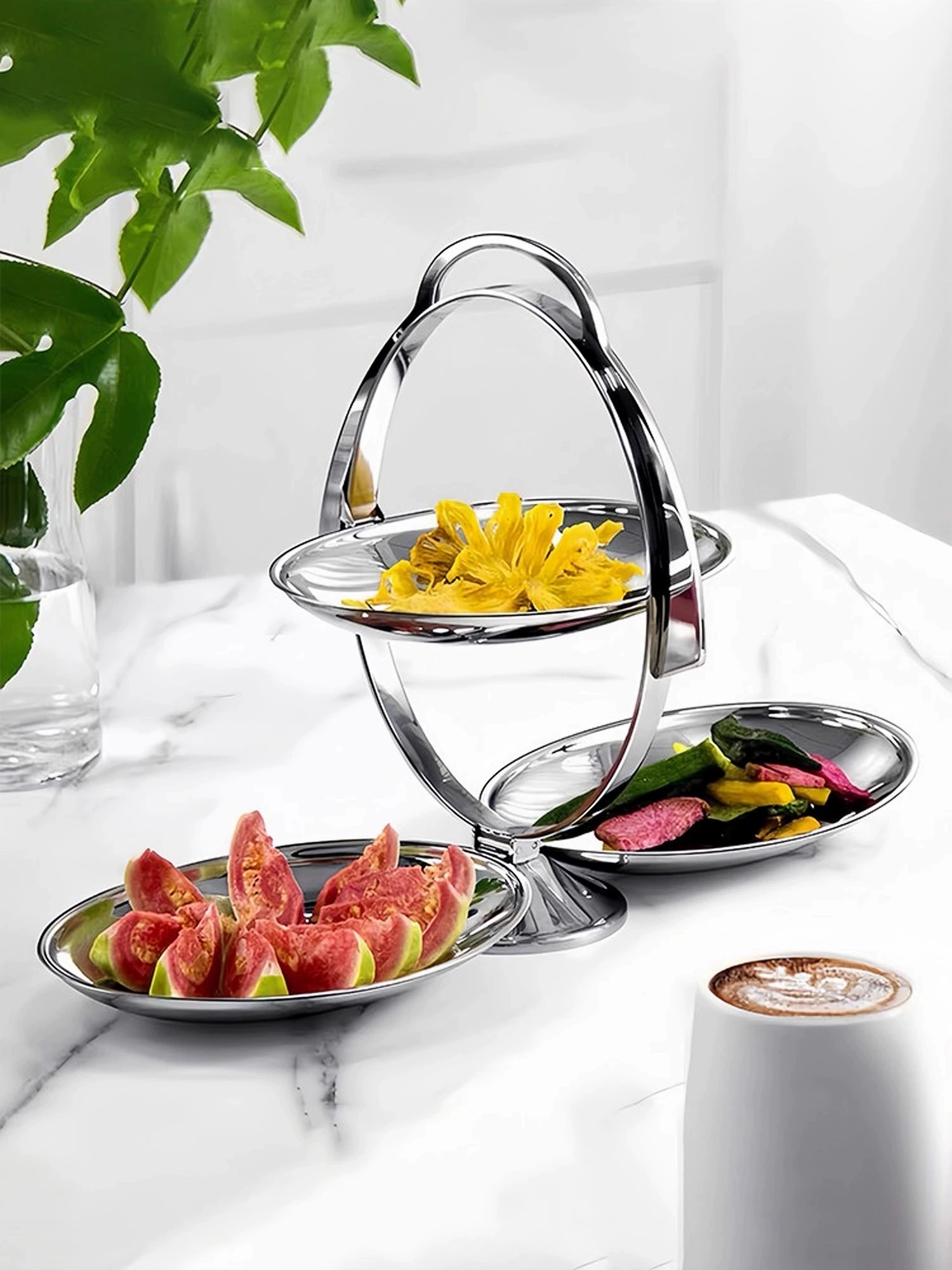 Elevate your presentation with this Modern Nordic Folding Fruit & Cake Rack, designed with a sleek chrome finish and elegant fold-out trays. Ideal for serving fruits, desserts, or afternoon tea, this light luxury hotel-style stand combines beauty with space-saving functionality—perfect for modern Thai kitchens, cafés, or home entertaining.