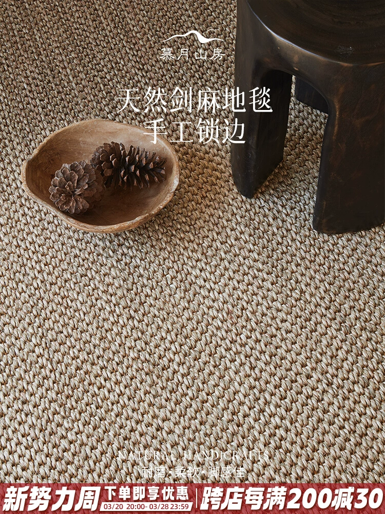 Muyueshanfang sisal carpet Middle ancient Caiji Chinese-style natural sisal woven living room tea room bedroom anti-slip environmental protection