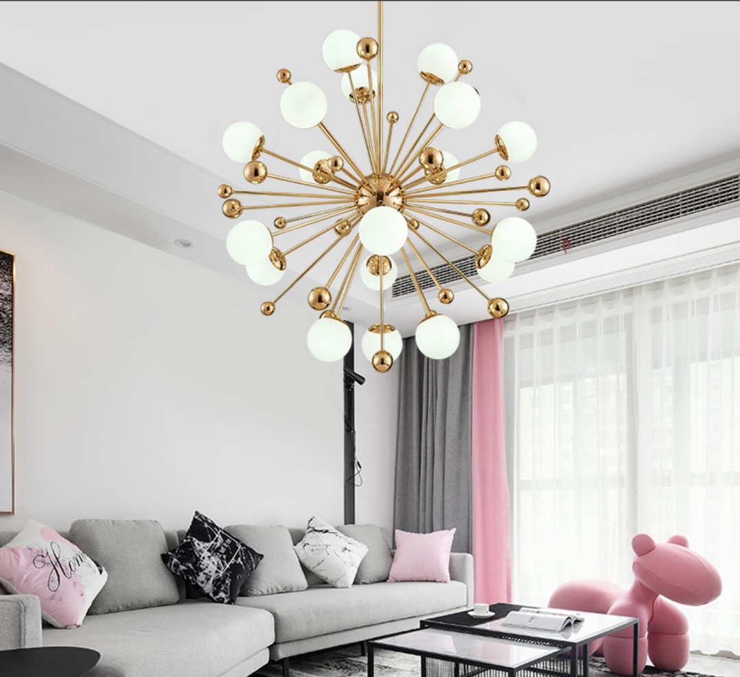 Add a burst of brilliance to your home with this Nordic Modern Dandelion Chandelier, designed with radiating golden arms and soft globe bulbs that resemble a blooming dandelion. Perfect for living rooms, dining rooms, bedrooms, or even fashion clothing stores, this creative designer lamp is a stunning centerpiece.