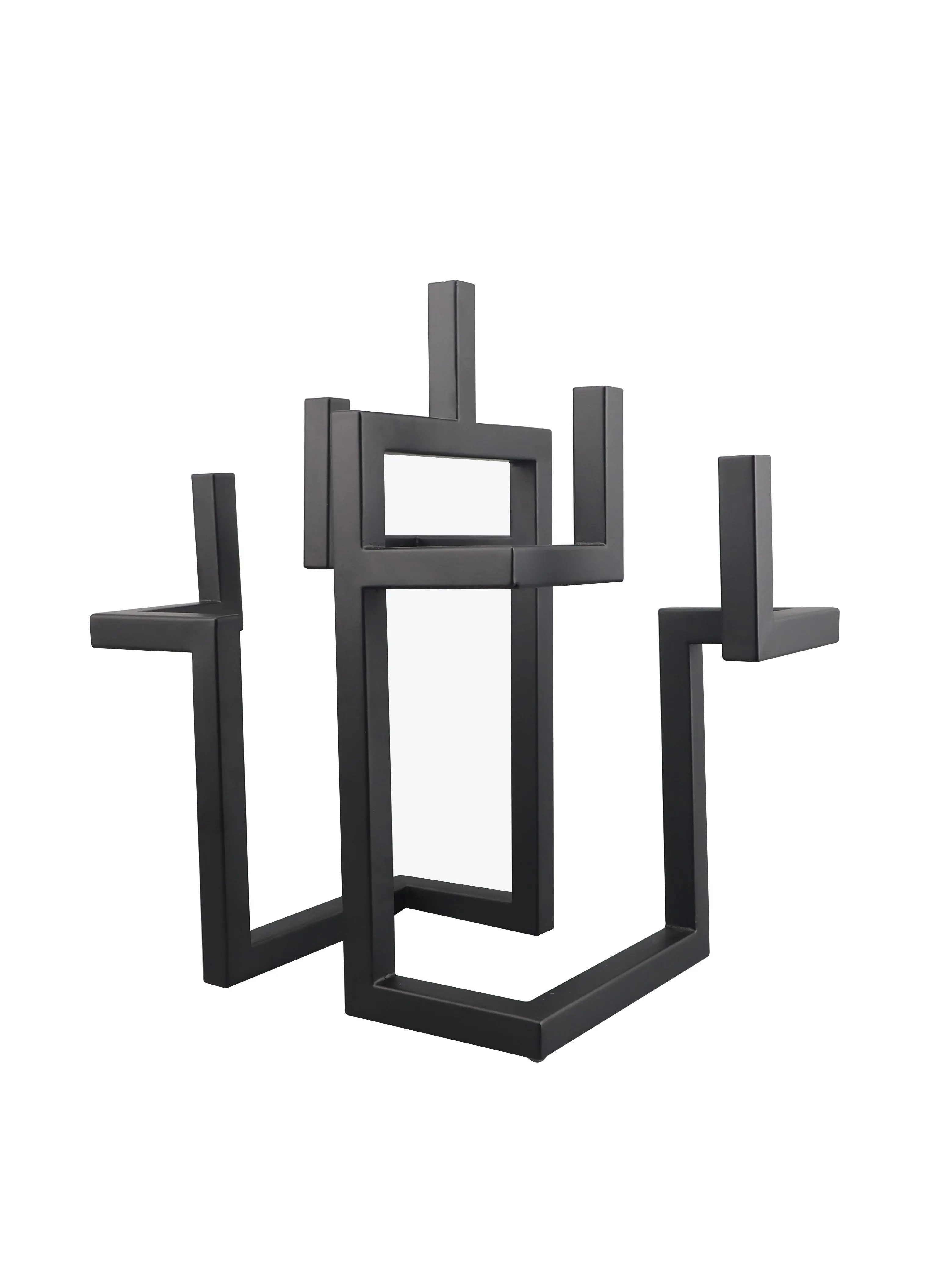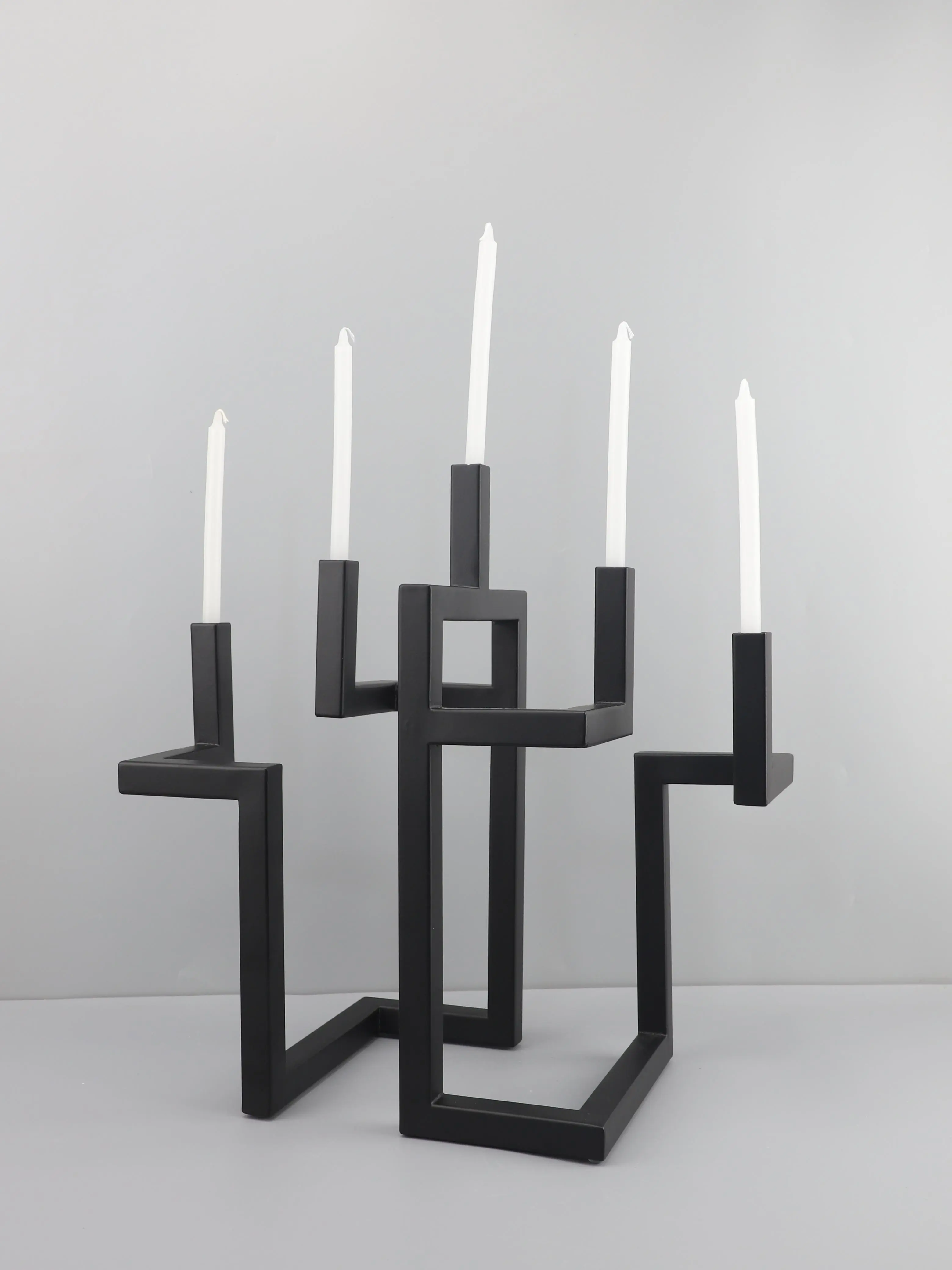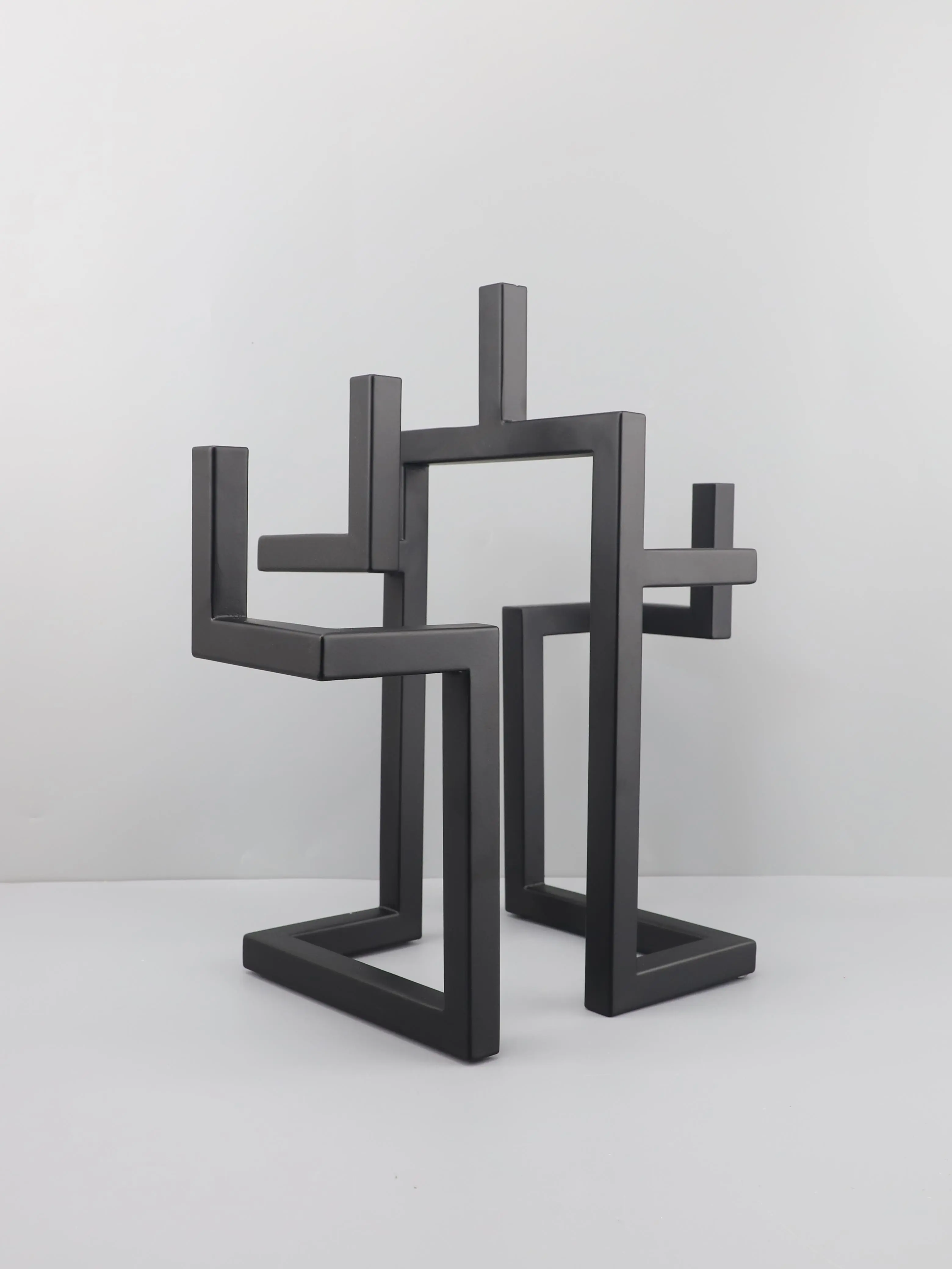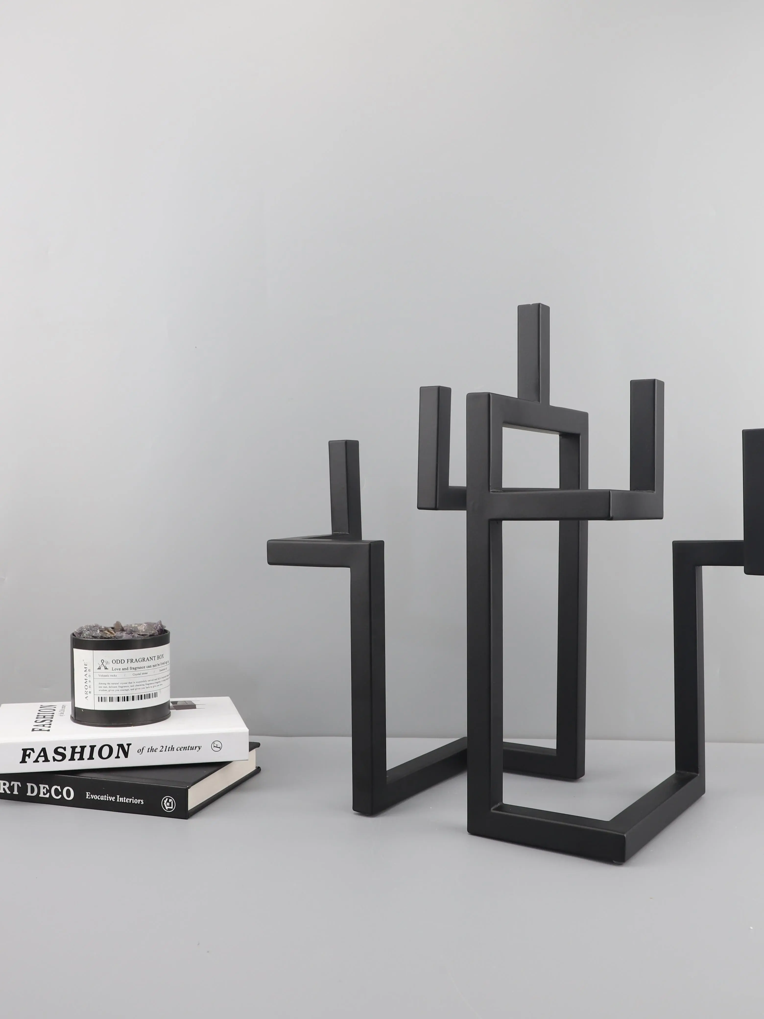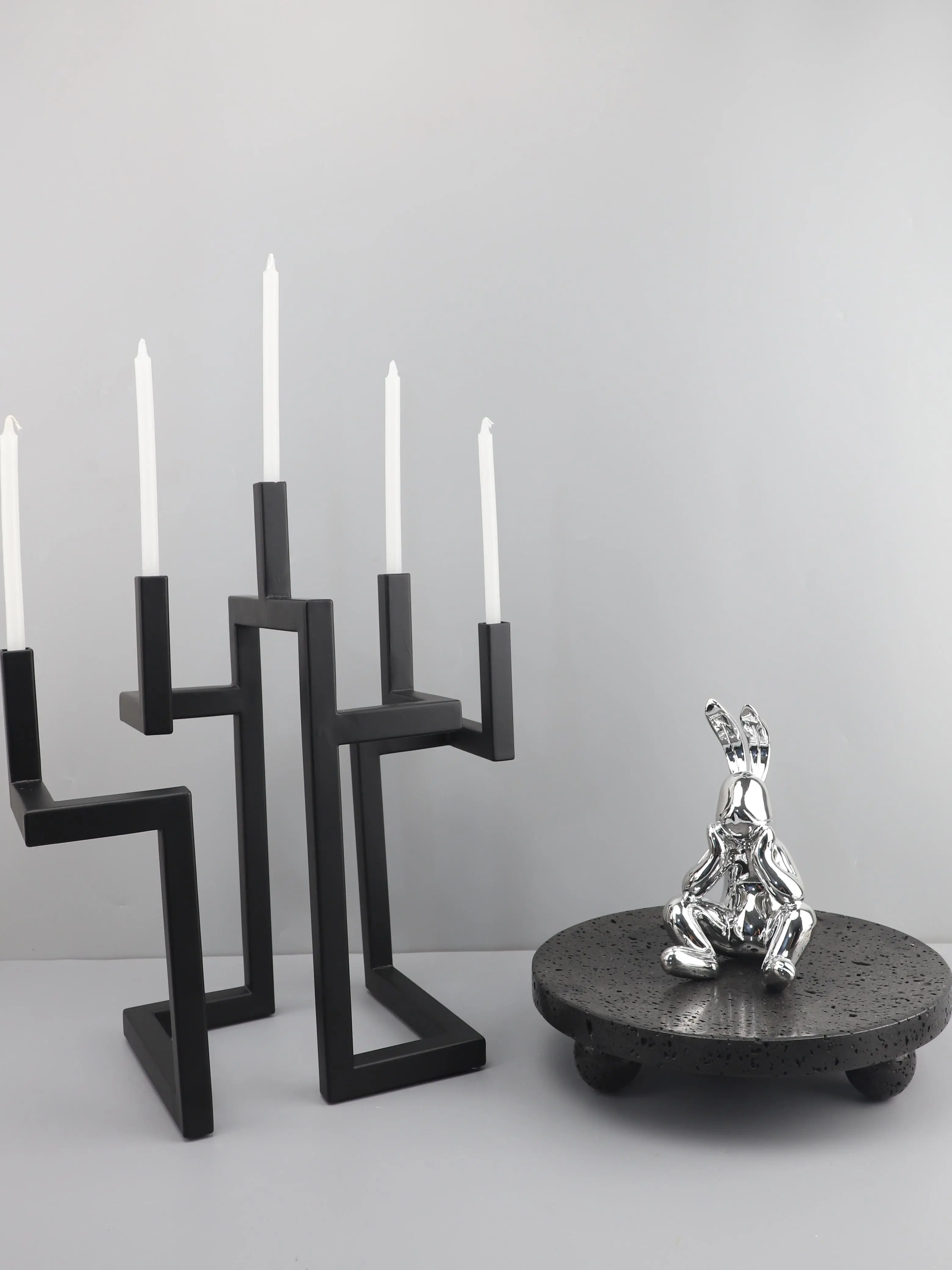 Add architectural flair to your interior with this Nordic Light Luxury Geometric Metal Candlestick, featuring bold linear shapes and a matte black finish. Perfect as a centerpiece on coffee tables, dining settings, or hotel model rooms, this modern sculpture doubles as a functional and artistic candle holder.