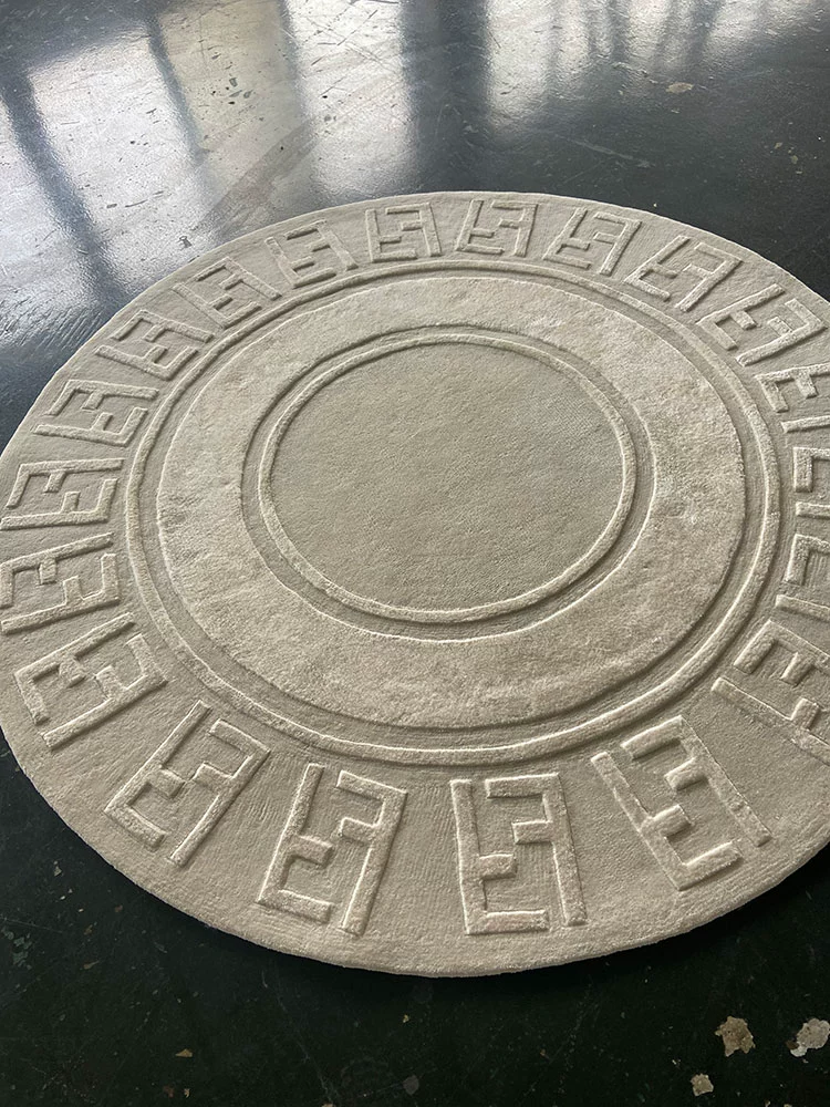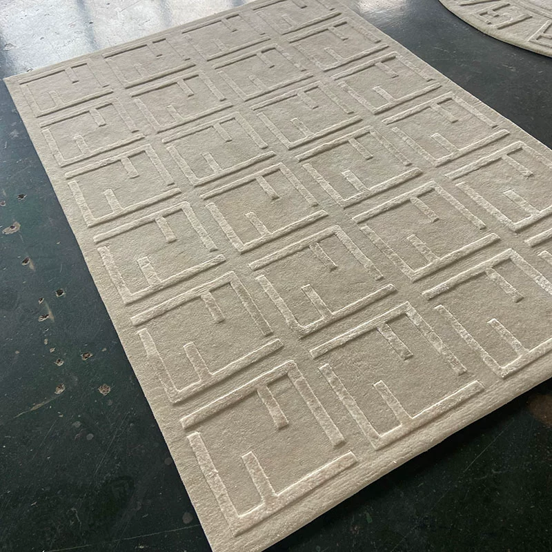 Crafted from premium imported wool and rayon, this high-end handmade rug features a raised double-F motif that evokes timeless elegance. Its neutral tone and embossed geometric pattern make it a standout piece for Living Room, Bedroom, or Study décor. Whether in a model room or your everyday home, this rug brings European flair to Thai Home Furniture with enduring comfort and style.