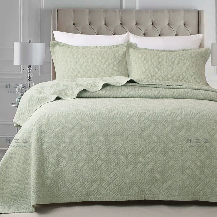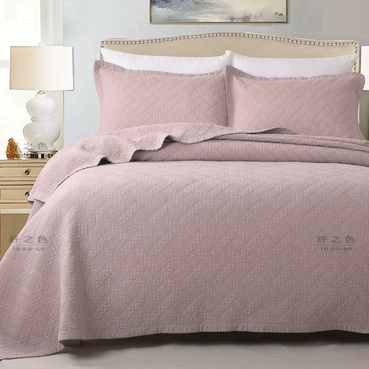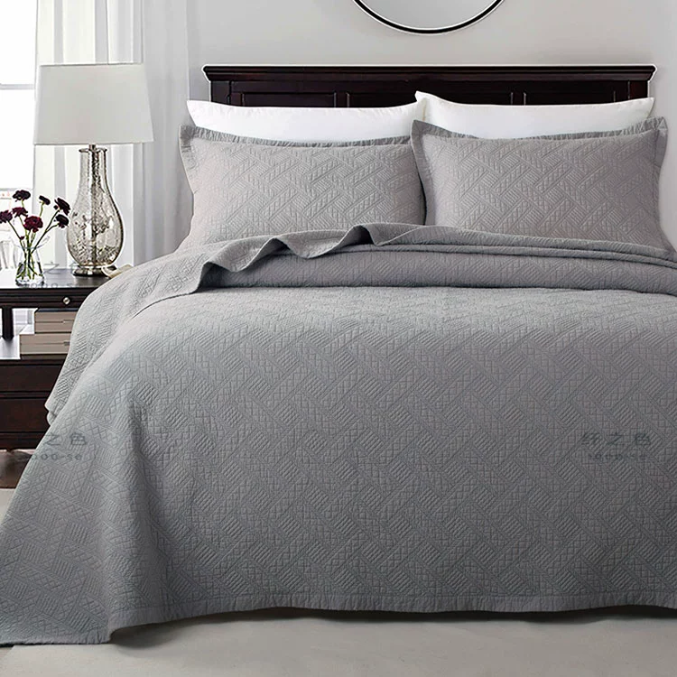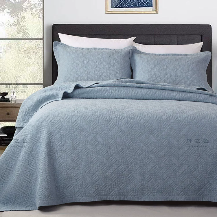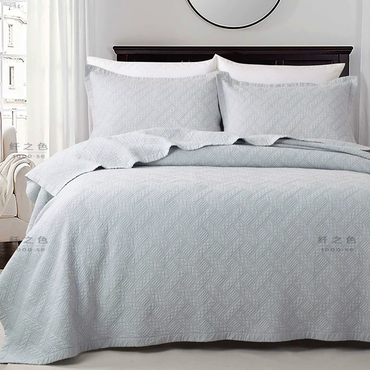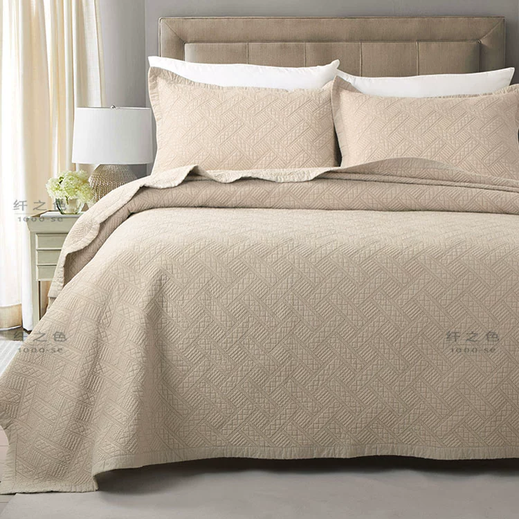 Simple and modern pure color embroidered quilt quilt three-piece set double cotton bed cover sheet high-string pure cotton bedding