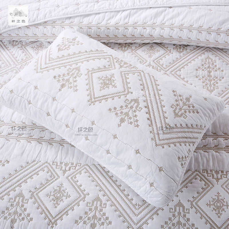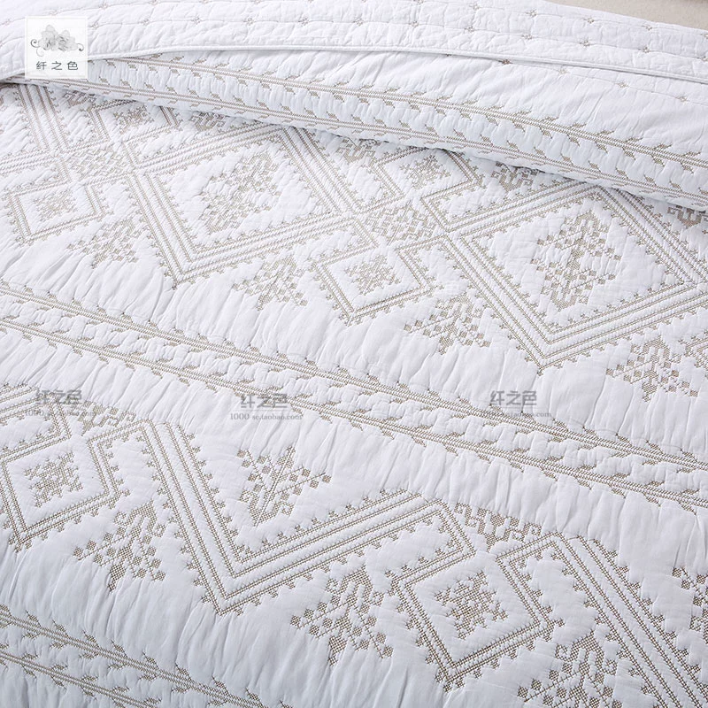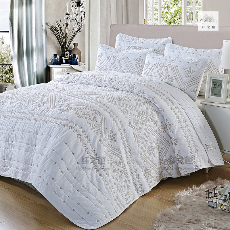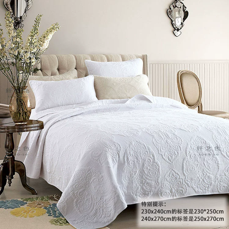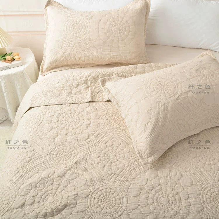 This three-piece set includes a quilted cover and matching pillow shams, featuring delicate European-style embroidery on soft, breathable white cotton. Perfect for summer nights or layered year-round, it blends effortlessly into both modern Thai Home Décor and classic interiors. Whether in a cozy Bedroom or a stylish guest suite, this set offers a cool, breathable touch with a handcrafted look.