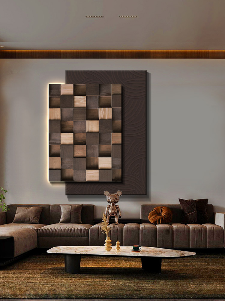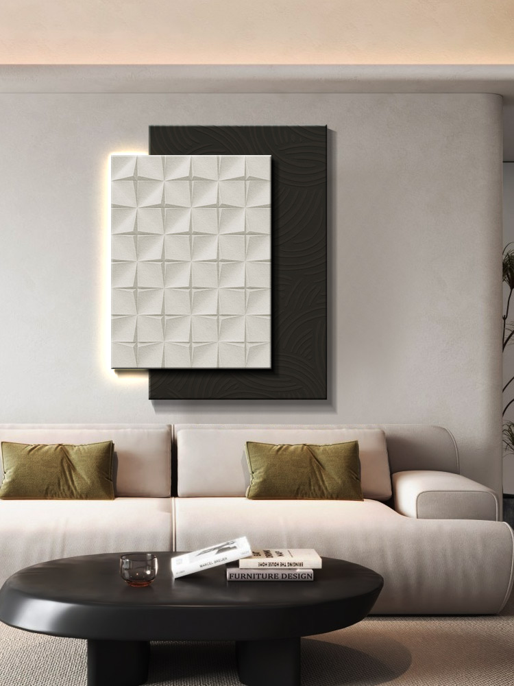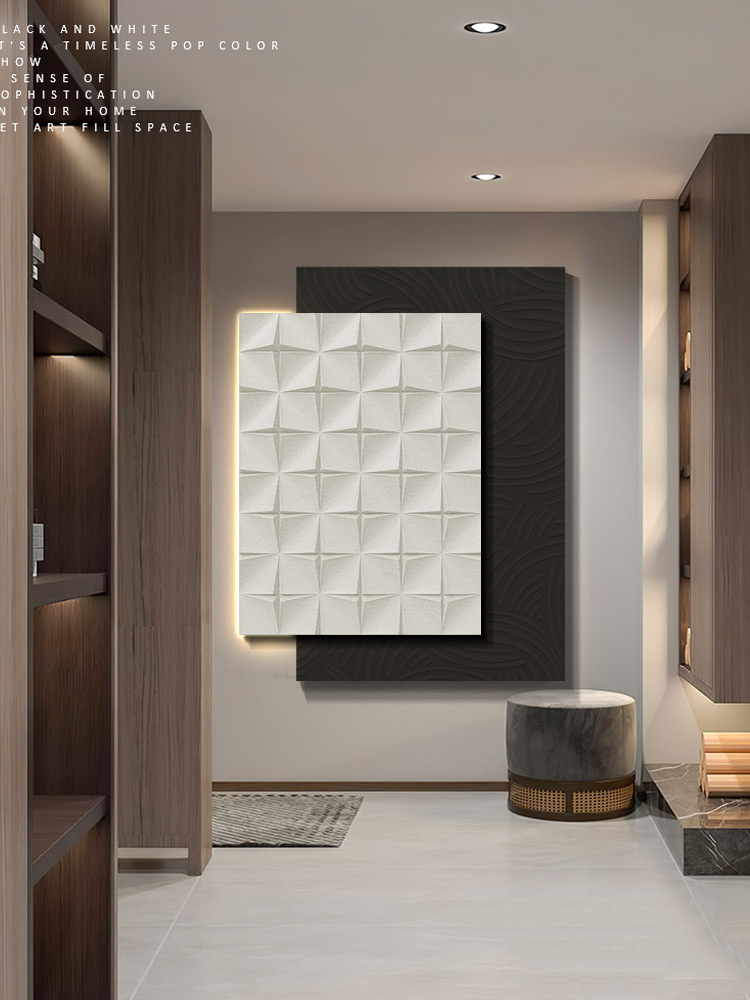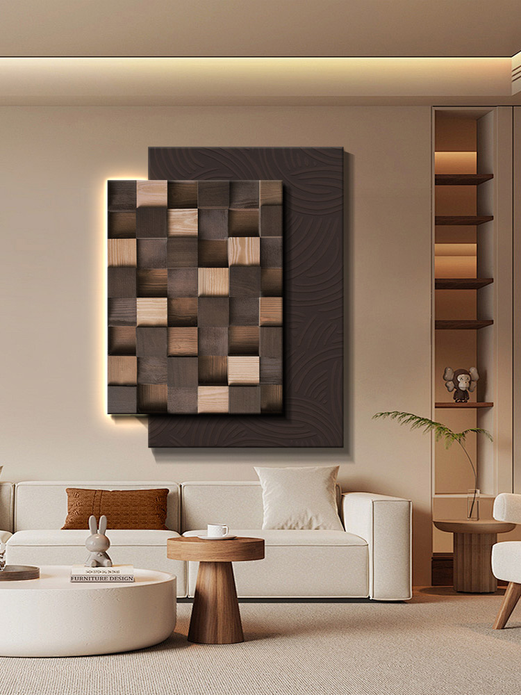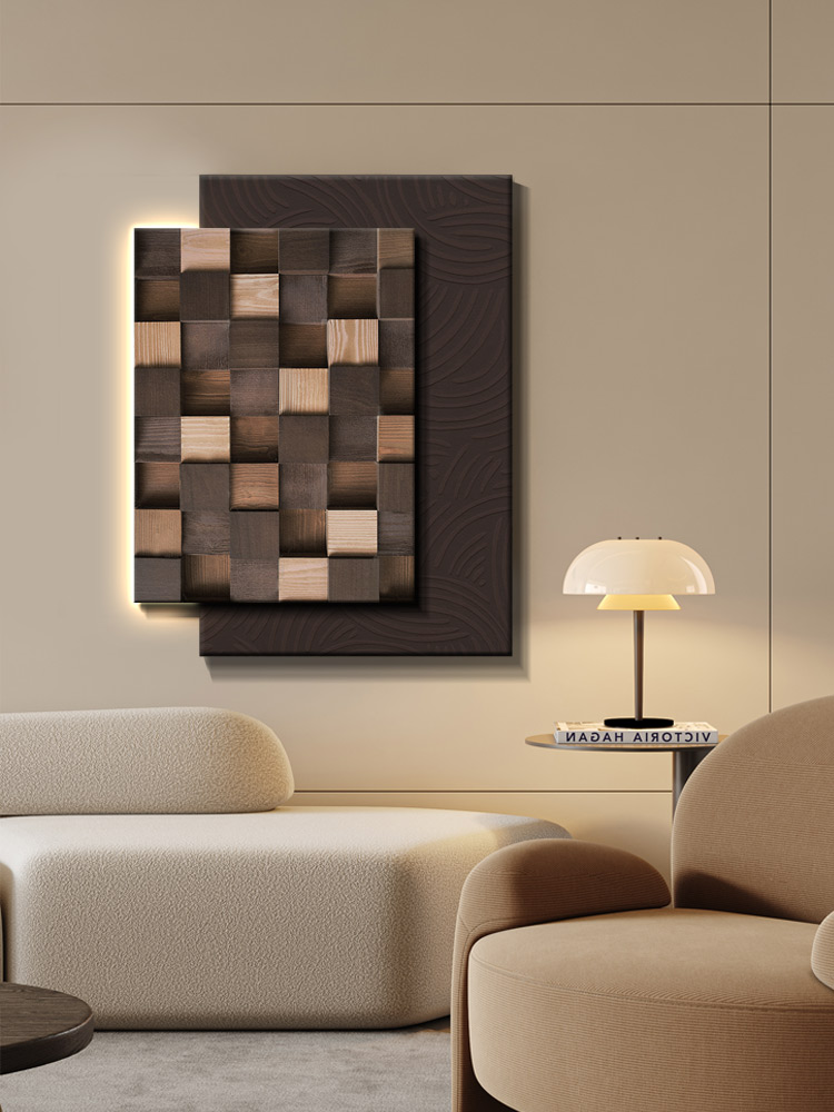 Wasabi wind enters the entrance hall decorative painting of three-dimensional double-layer sandstone luminous wall lights high-end living room corridor corridor hanging painting