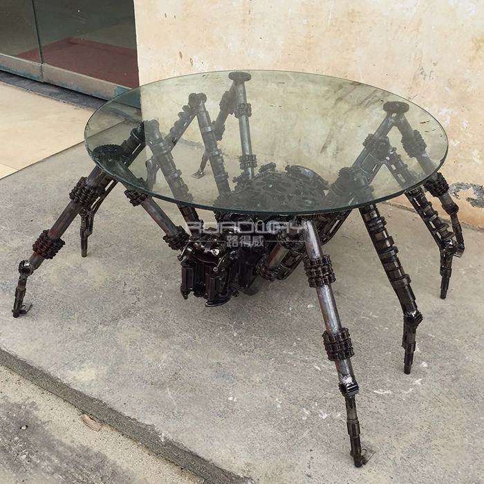 Add a daring edge to your space with this Steampunk Spider Coffee Table, blending retro industrial design with artistic animal form. Made from reclaimed metal parts and chains, its bold spider-leg base supports a sleek glass top, making it a true conversation piece for homes, lofts, cafés, and themed bars in Thailand.